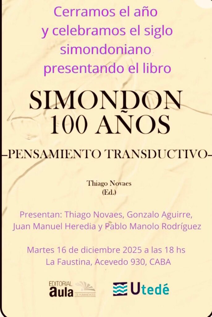 Editorial Aula Humanidades – Libro Simondon 100 Años – Pensamiento Transdutivo